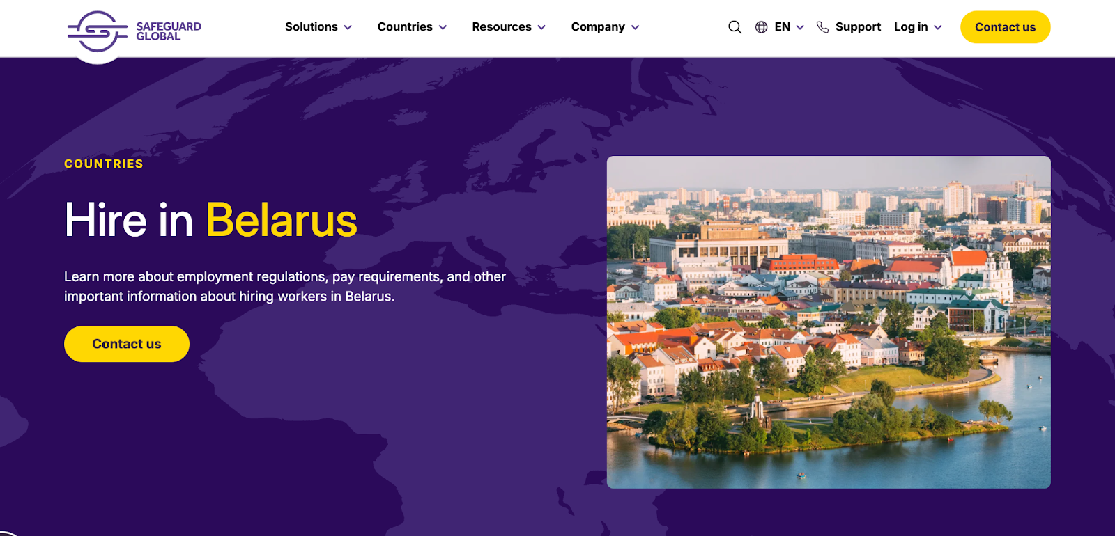 Safeguard Global combines international scale with deep Belarus compliance expertise, managing payroll, employment contracts, and contributions to FSSN while supporting tech and professional service sectors.
