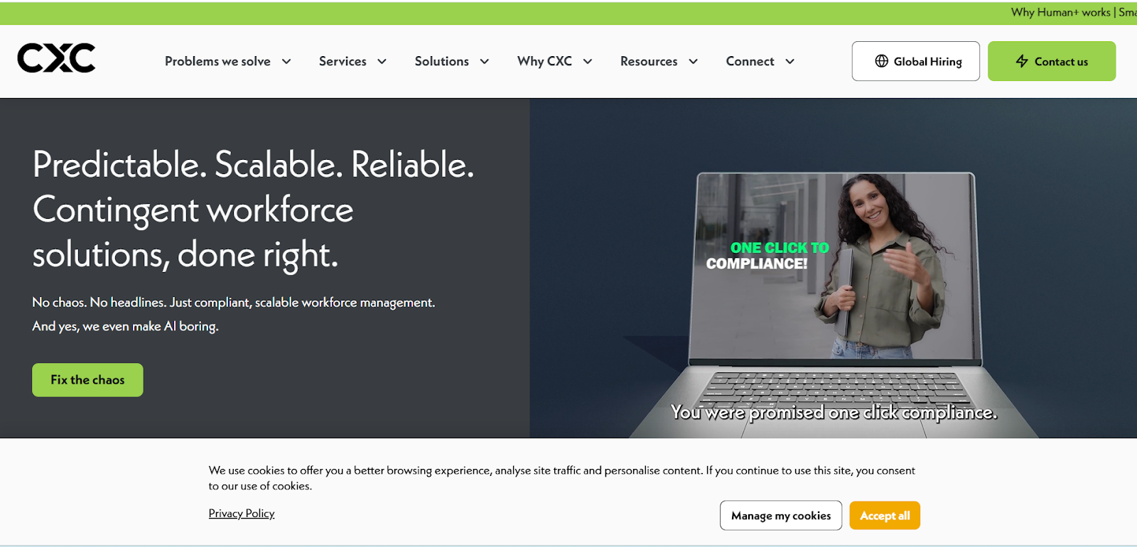 CXC Global differentiates through its workforce management capability, providing employment compliance and payroll processing for companies managing complex international workforce structures that include Bulgaria.