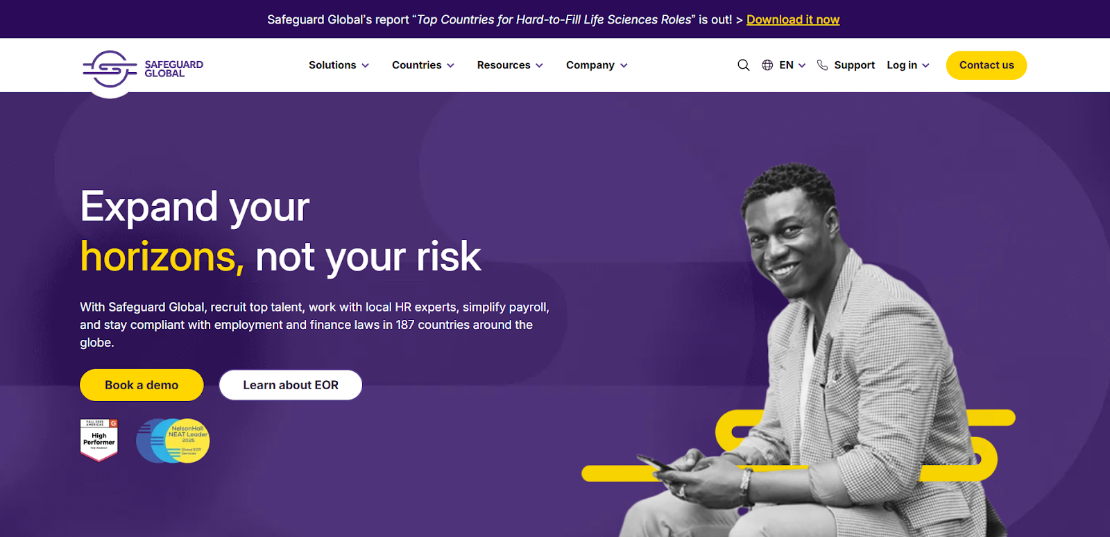 Safeguard Global is a global full-service Employer of Record operating in Bulgaria, best suited for enterprises that need comprehensive EOR services with a structured two-week onboarding process and benefits and tax administration.