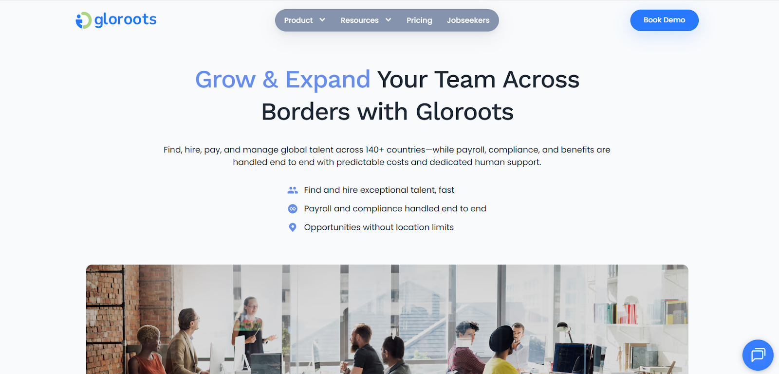 Gloroots is an all-in-one global employment platform operating across 140+ countries, including Colombia, suited for companies managing international talent across LATAM and other global markets without a local entity.