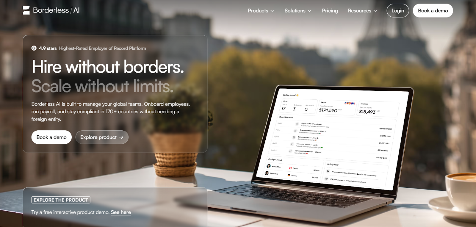 Borderless AI is a global EOR with Colombia coverage, suited for companies seeking AI-native employment management for international hiring programs across multiple markets including Latin America.