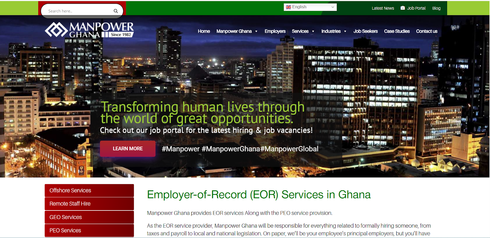 - Best EOR service providers in Ghana include Gloroots, GroConsult, Manpower Ghana, Kharis Global Group, Remote People, Deel, Remote, Playroll, Safeguard Global, and Neeyamo.