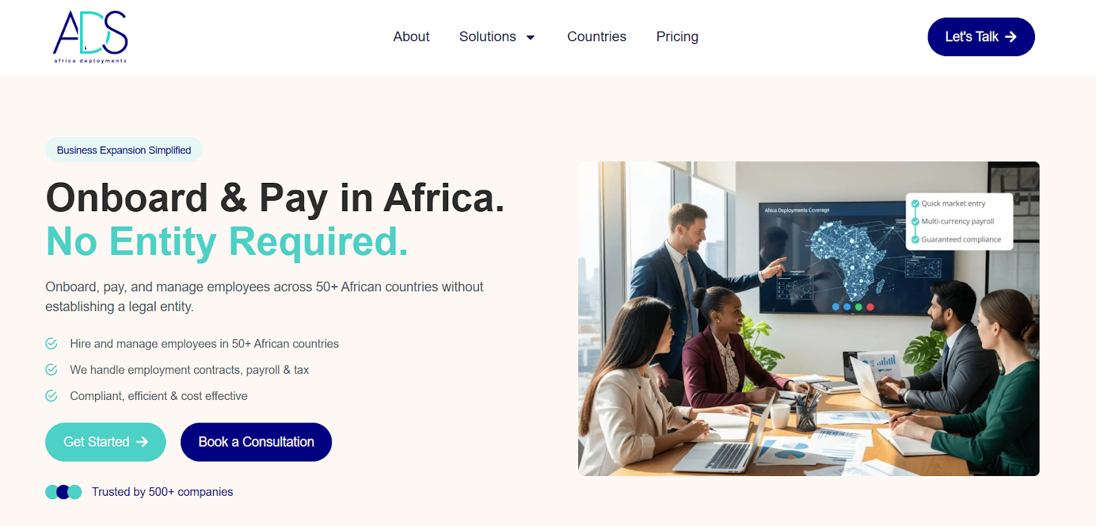 Africa Deployments is a specialist EOR operating across 50+ African countries, including Ivory Coast, suited for companies prioritizing regional compliance expertise and cost-competitive employment in West Africa.