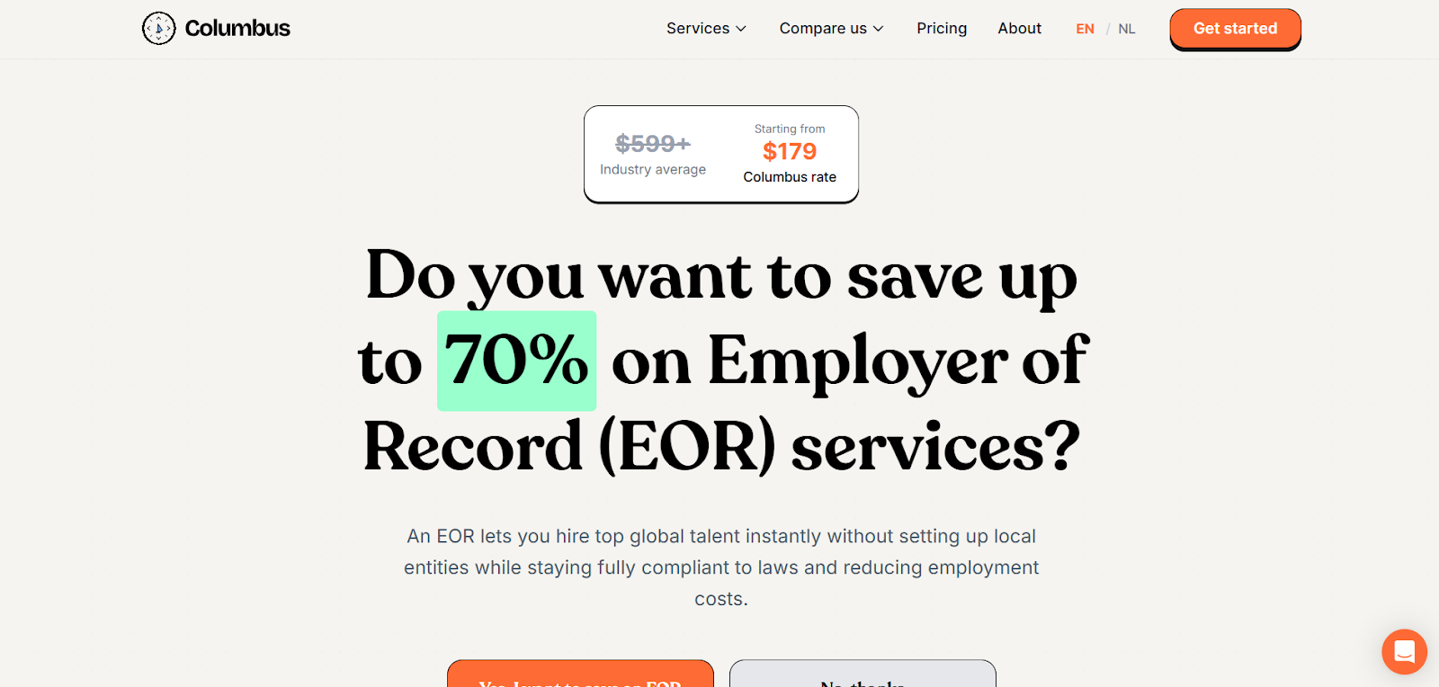 Hire with Columbus is a global EOR provider operating in 185+ countries, including Norway, best suited for cost-conscious companies that need transparent entry-level pricing and fast onboarding timelines.