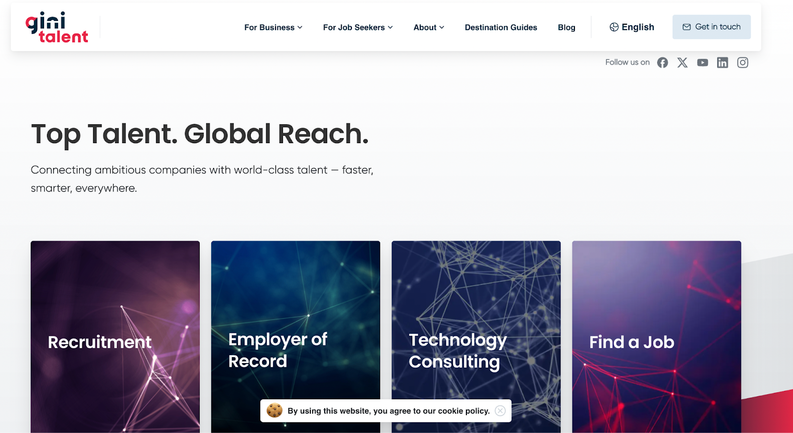 Gini Talent operates as a Portugal-based EOR specializing in personalized compliance services and localized HR support with hands-on client relationships. Their service model emphasizes detailed legal compliance, tailored onboarding experiences, and direct account management for European companies hiring in Portugal requiring consultative guidance.