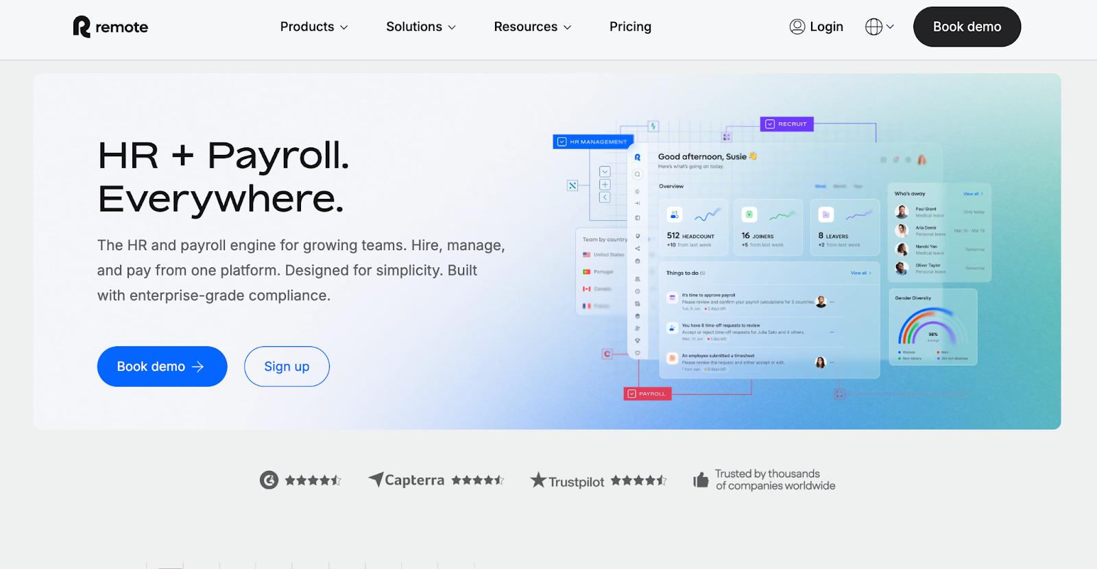 - Global integrations: Multi-tool support enabling connection with existing HR and business systems.
