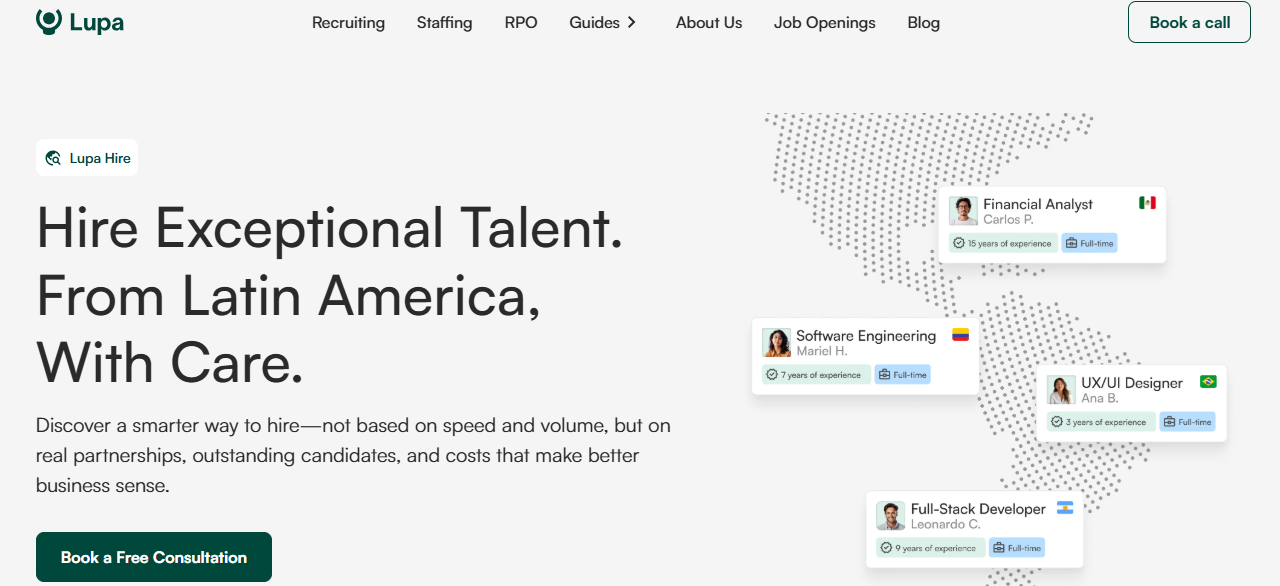 Lupa and OnHires both rank among 2025's top-rated agencies for cross-border tech hiring with faster timelines than traditional firms.