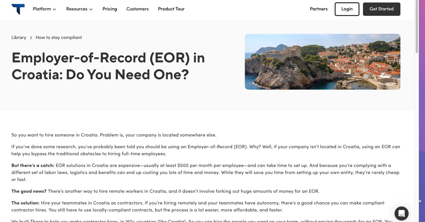 Get Thera provides Employer of Record (EOR) services in Croatia, enabling global companies to hire local employees without establishing a Croatian entity. Headquartered in Zagreb.