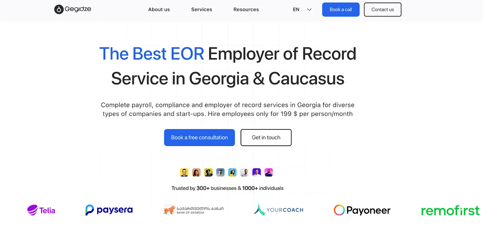 GEGIDZE & Partners provides Tbilisi-based EOR with comprehensive payroll outsourcing, compliance, and local HR services at competitive €199 per employee/month pricing. They bring trusted Georgian Revenue Service compliance, statutory benefits management, and cost-effective Caucasus hiring expertise.