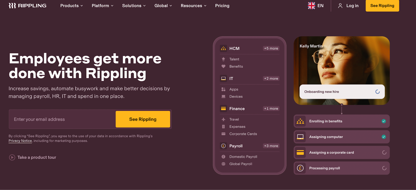 Enterprise clients and tech-driven firms seeking all-in-one HR and IT automation with rapid hiring cycles and comprehensive payroll and device management.