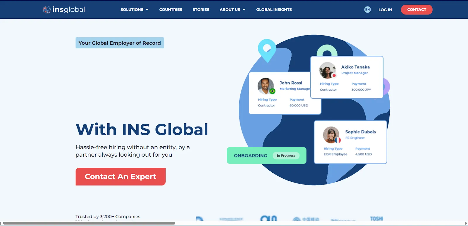 INS Global is a global EOR with Ivory Coast support, suited for companies seeking a digital employment platform with fast onboarding and competitive pricing for West Africa market entry.