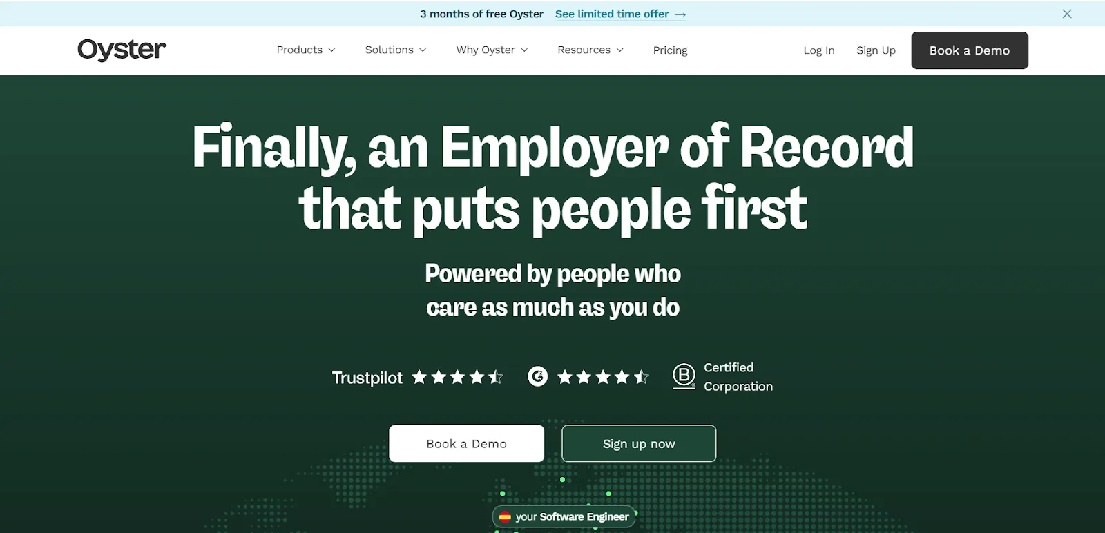 B Corp certification and a 48-hour onboarding capability differentiate Oyster for companies that value both employment speed and verified ethical operating standards.