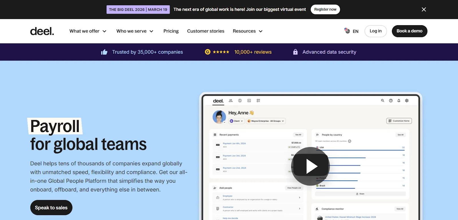 - Full lifecycle management: Comprehensive support from hiring through termination with compliance oversight