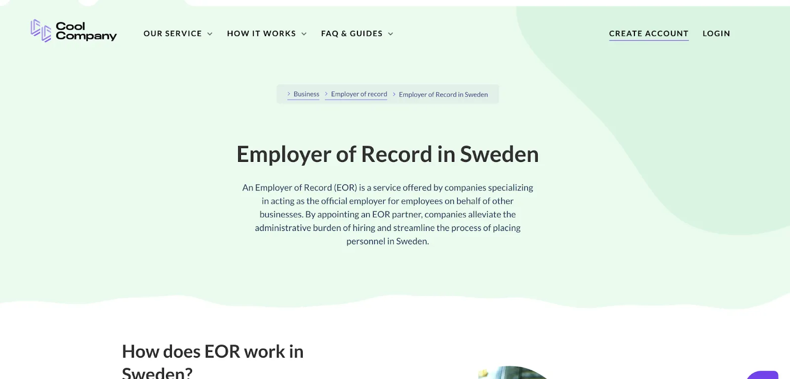 - Employer of Record (EOR) in Sweden legally employs workers on behalf of foreign companies, managing payroll, social security contributions (31.42%), and local compliance without entity setup.
