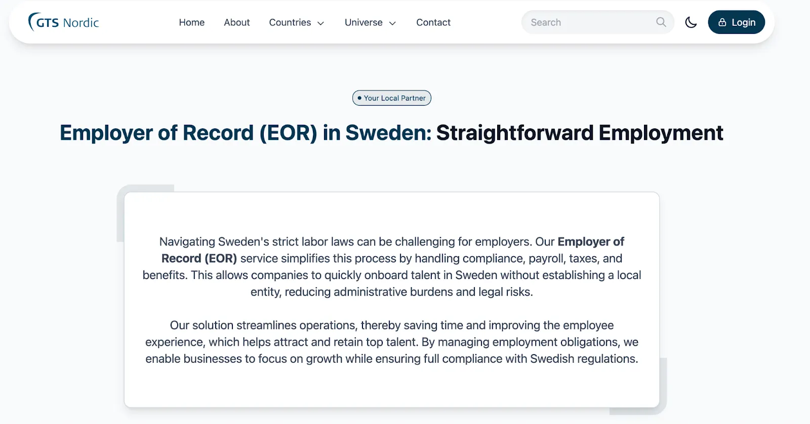 Companies seeking a compliant, risk-averse EOR partner with deep Nordic focus and expertise across Sweden and neighboring markets.