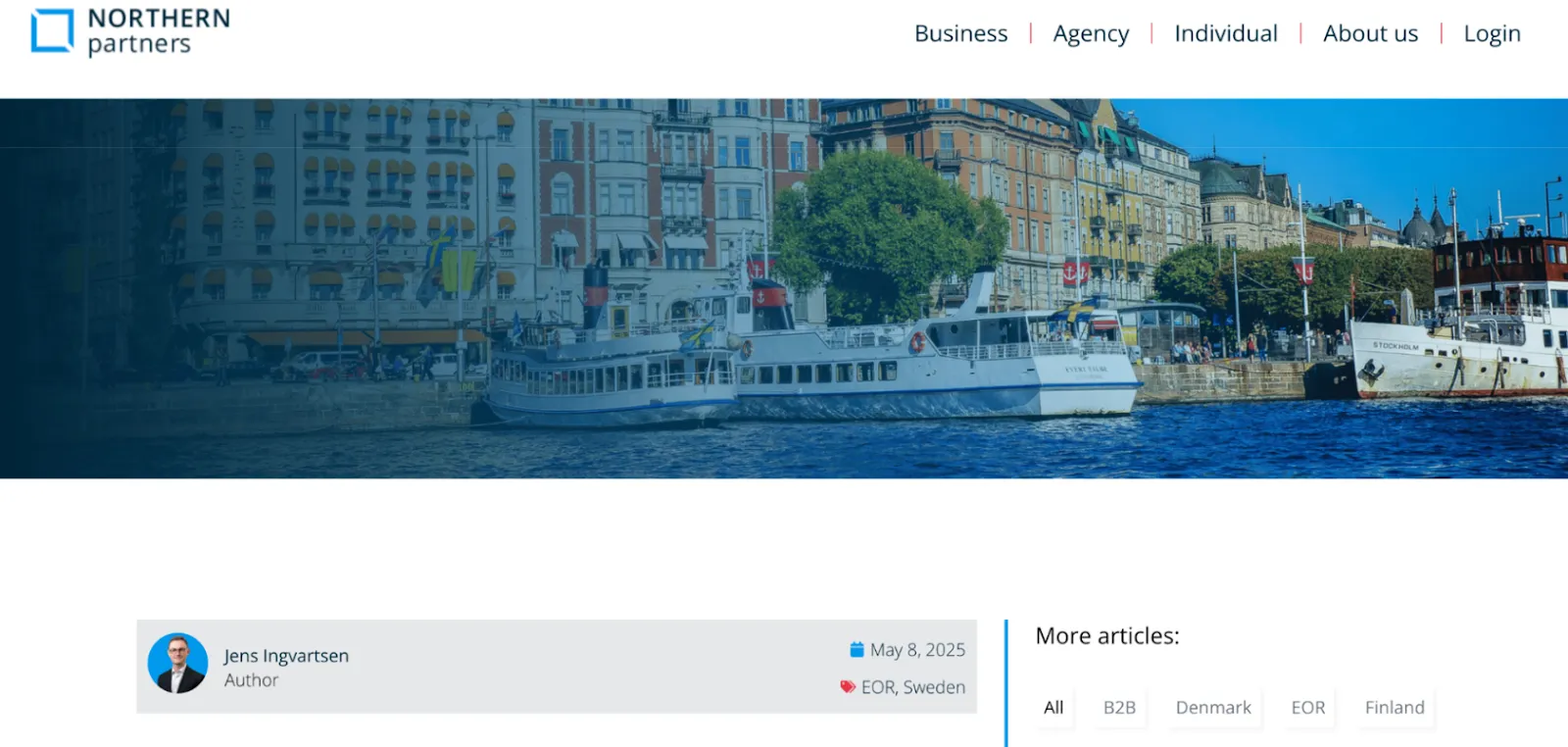 Northern Partners delivers Employer of Record (EOR) services across Sweden, Denmark, Norway, and Finland, enabling companies to hire Swedish employees without establishing a local entity. They handle payroll, tax, social contributions, and compliance with Swedish labor law and collective agreements on your behalf.