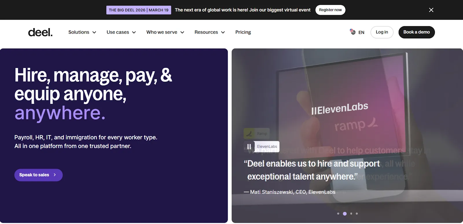 Deel is a global EOR built for tech companies and globally distributed teams that need fast, compliant hiring across contractors and full-time employees.