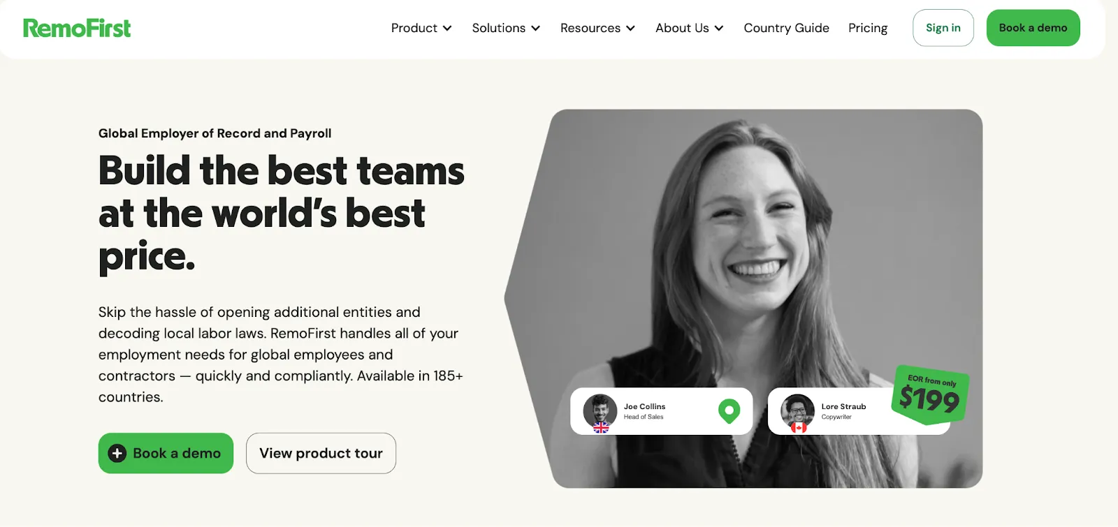 RemoFirst helps companies hire and manage employees globally with a focus on speed and wide country coverage. It supports operations in more than 180 countries and is designed for businesses that need to onboard and pay distributed teams quickly.