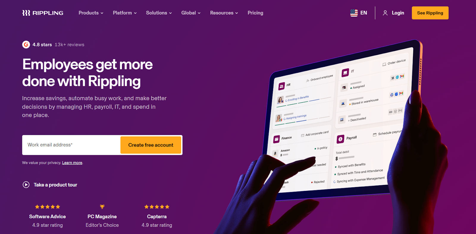 - Platform feature depth is narrower than all-in-one HRIS systems like Rippling, requiring integration with separate tools for benefits administration or performance management