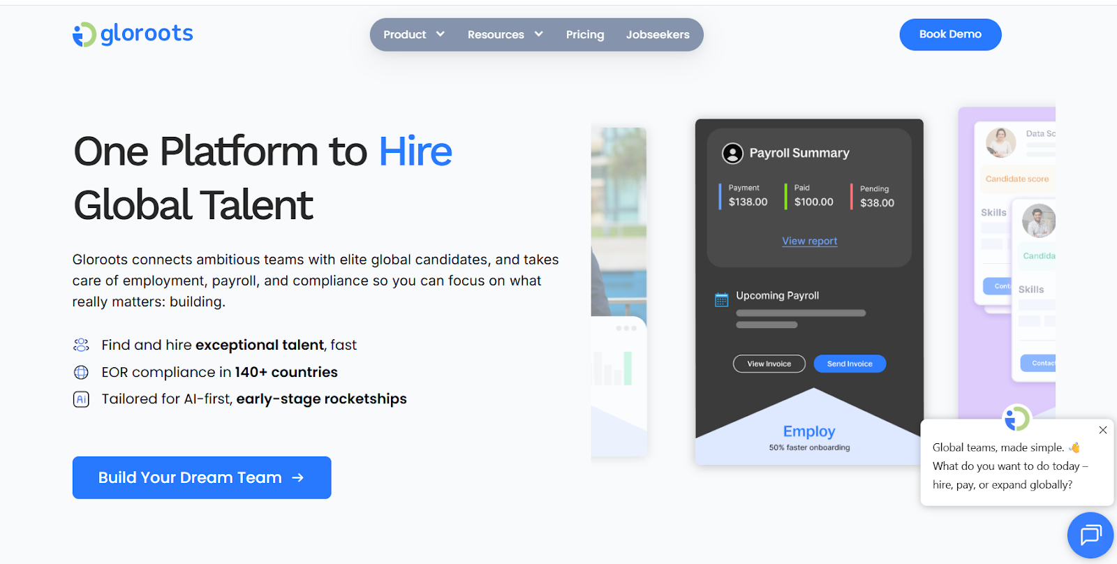 Gloroots is a global employment platform specializing in India GCC establishment and compliance-first EOR services across 100+ countries for companies scaling international operations. The platform serves HR leaders and finance teams at mid-market companies who need transparent invoicing, dedicated compliance support, and flexible entity models beyond pure EOR arrangements.