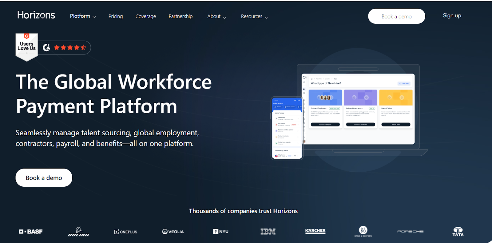 Horizons uses custom enterprise pricing typically ranging from $800 to $1200 per employee monthly, depending on countries, service requirements, and included insurance coverage, targeting risk-averse organizations.