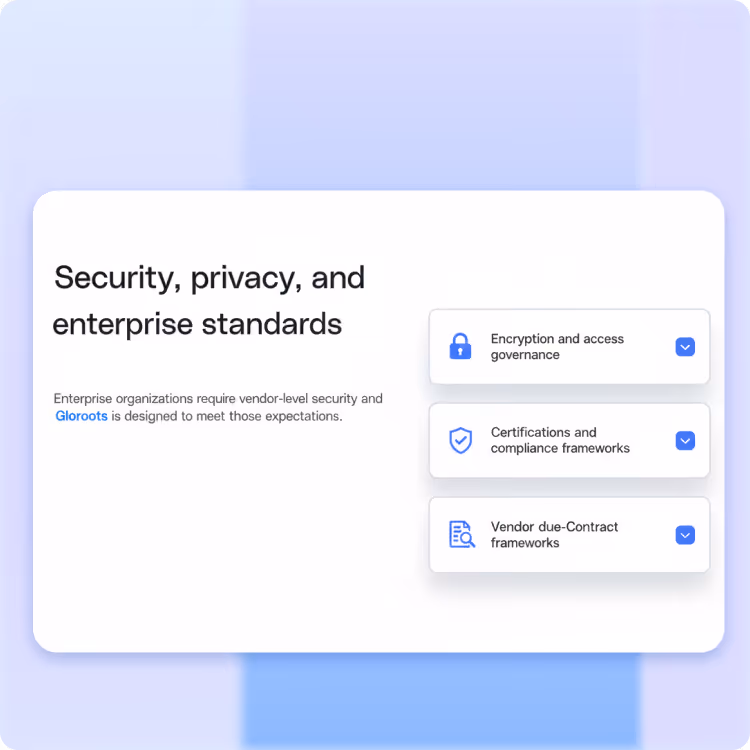 Enterprise organizations require vendor-level security and compliance assurance. Gloroots is designed to meet those expectations.